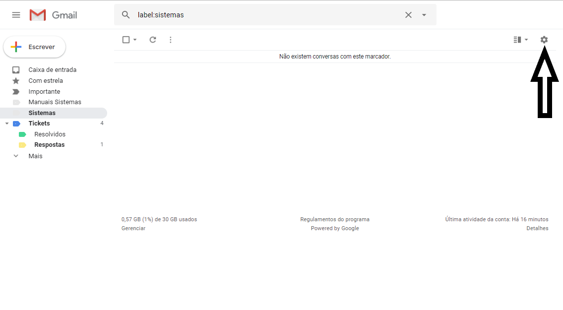 Passo 1 - Clique na engrenagem conforme mostra a imagem.